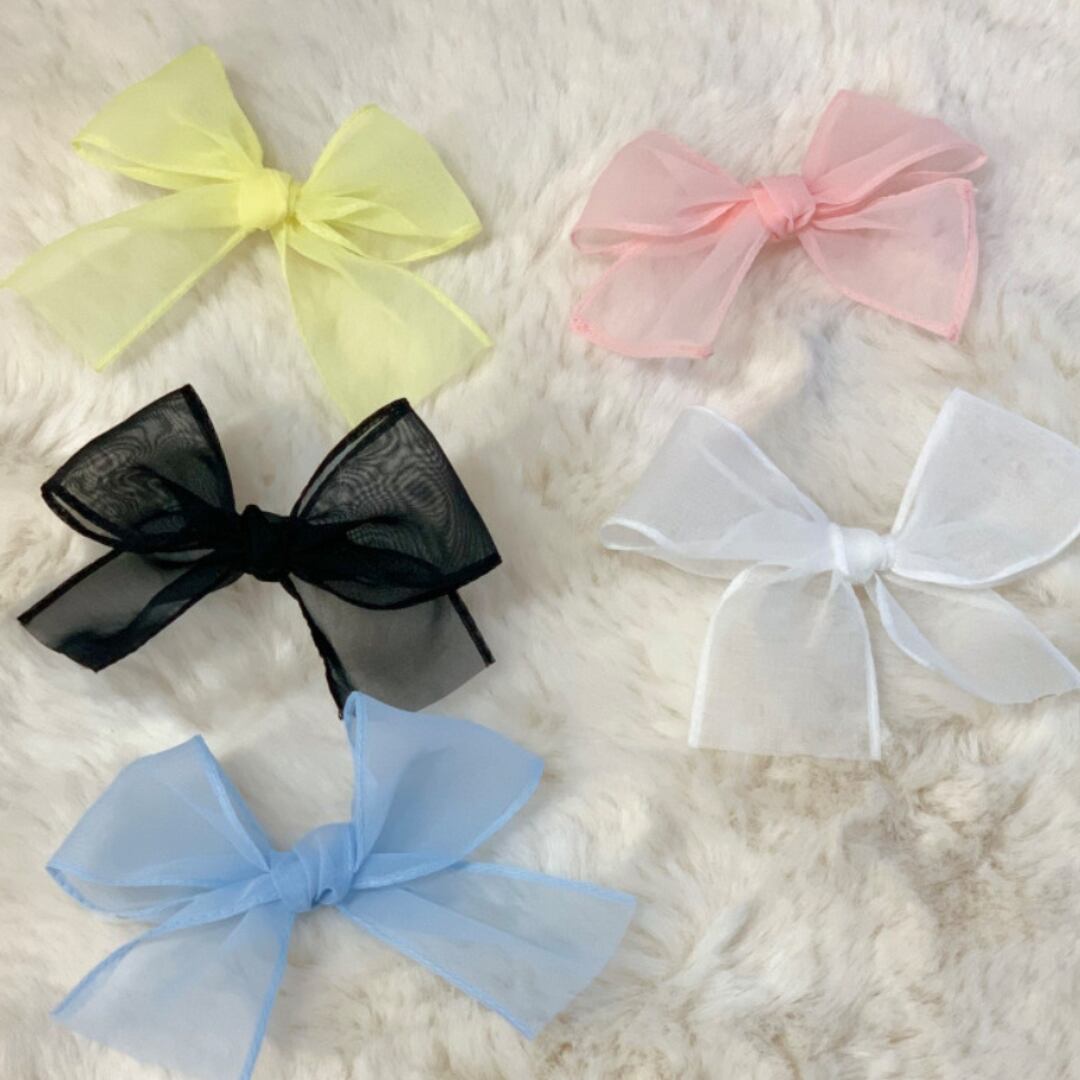 お揃いのヘアリボンもございます。通常ケープと同色のヘアリボンをお届けします。別の色がご希望の場合は、備考欄に入力してください(ピン部分はプラスチック)