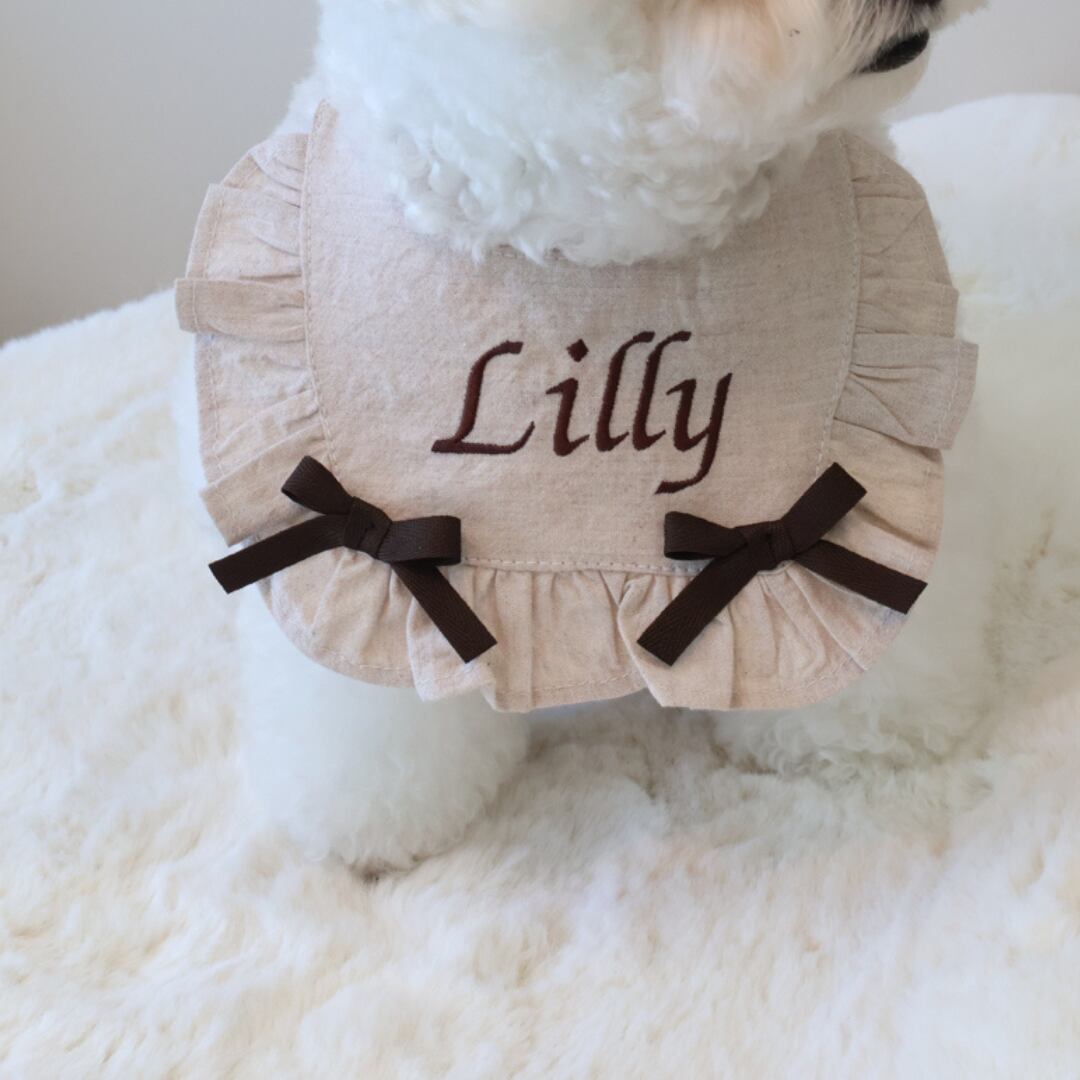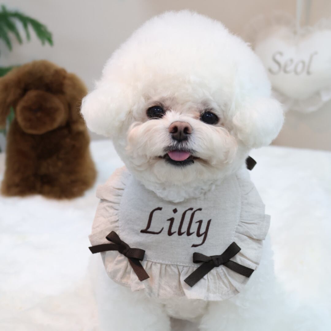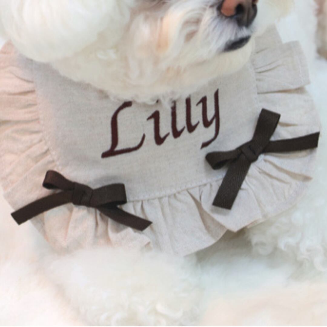 こちらは、刺繡・リボンともにブラウンでお作りします