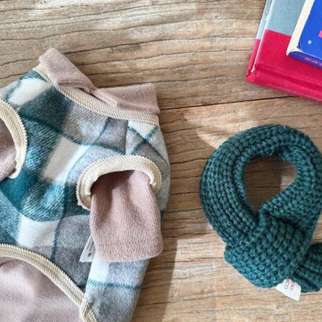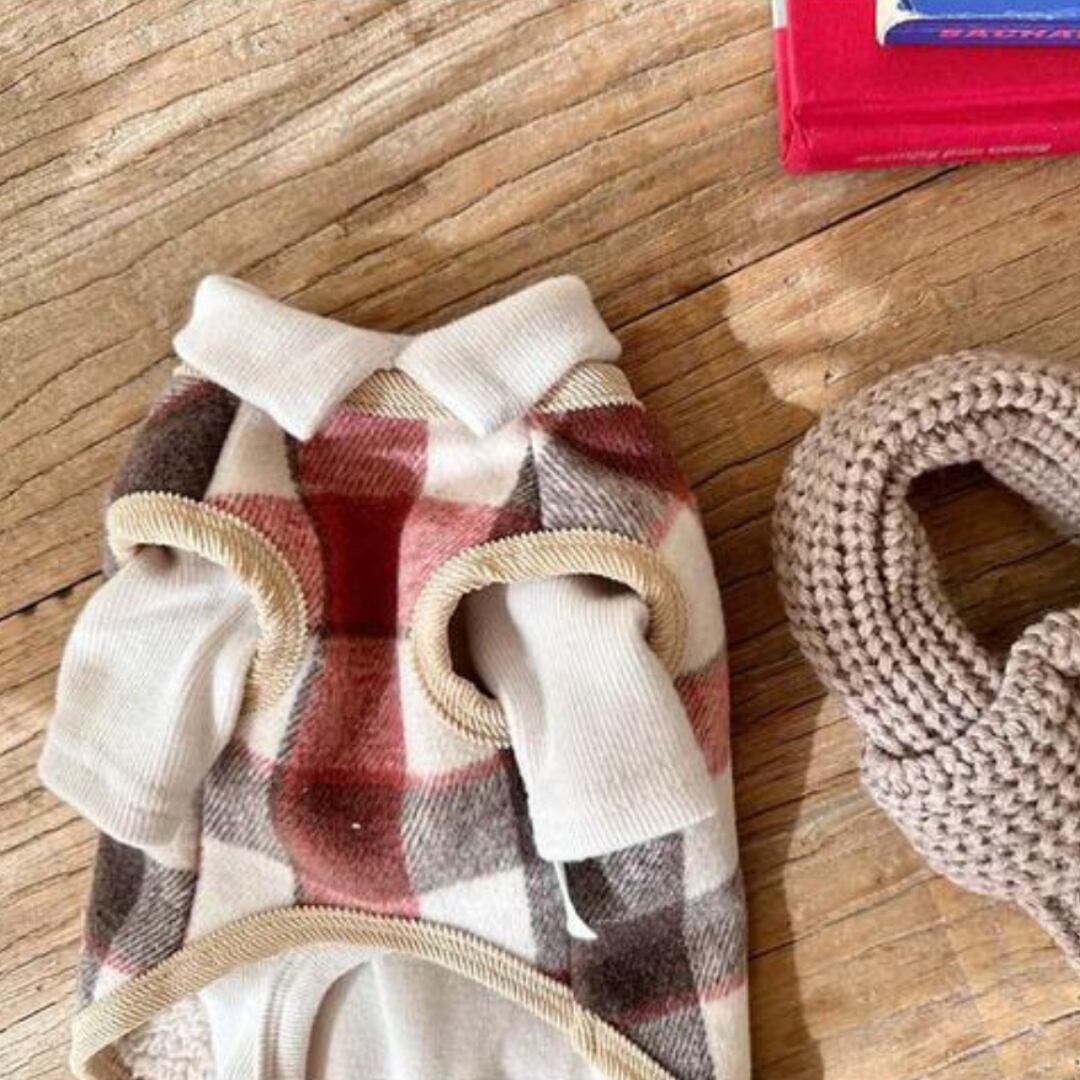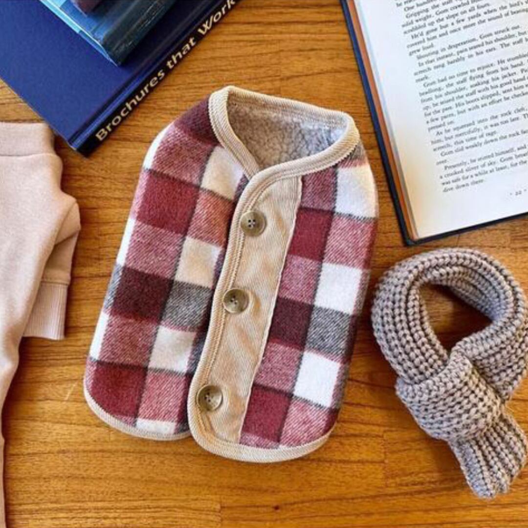 柔らかいチェックウール生地とフリース裏地で厚みは抑えながら