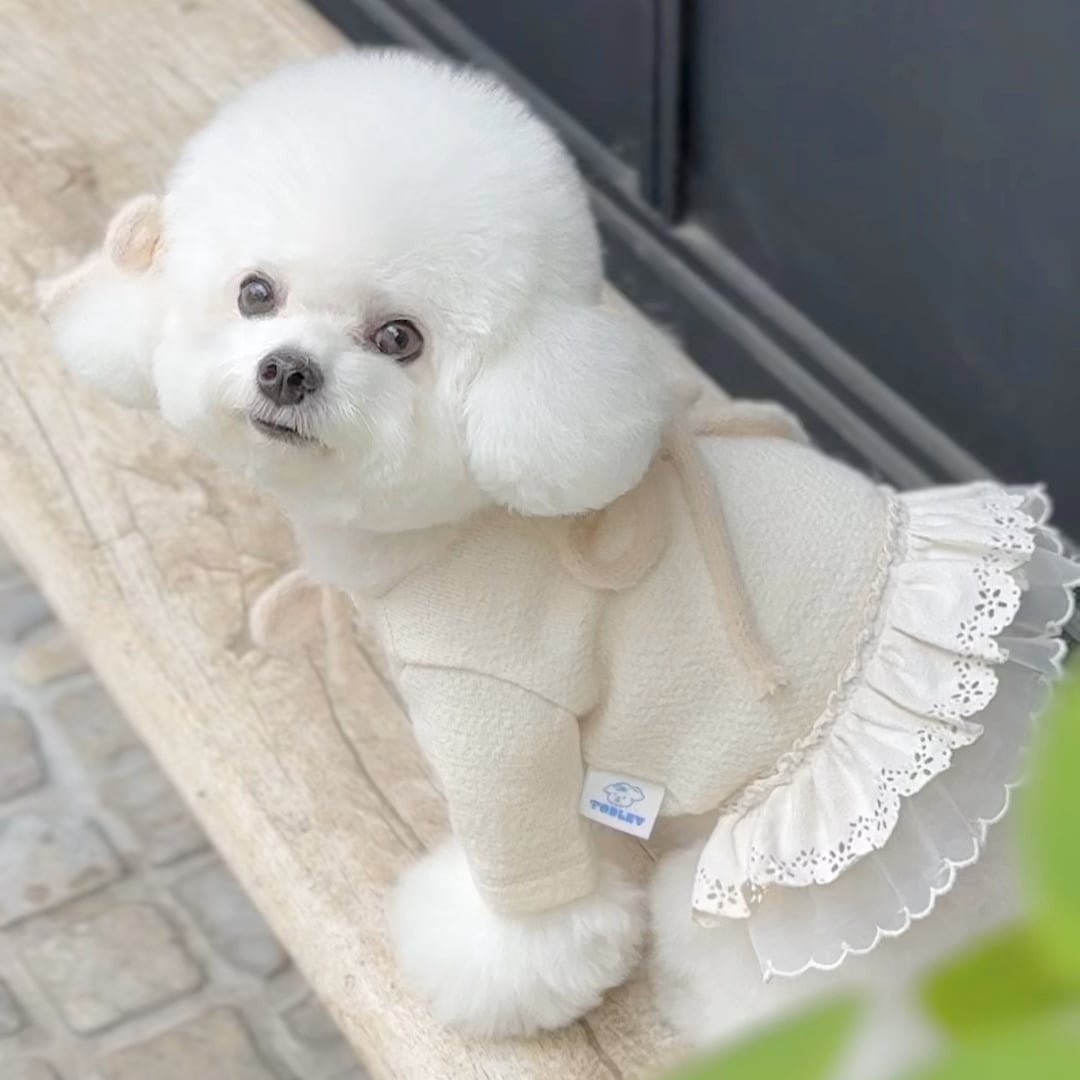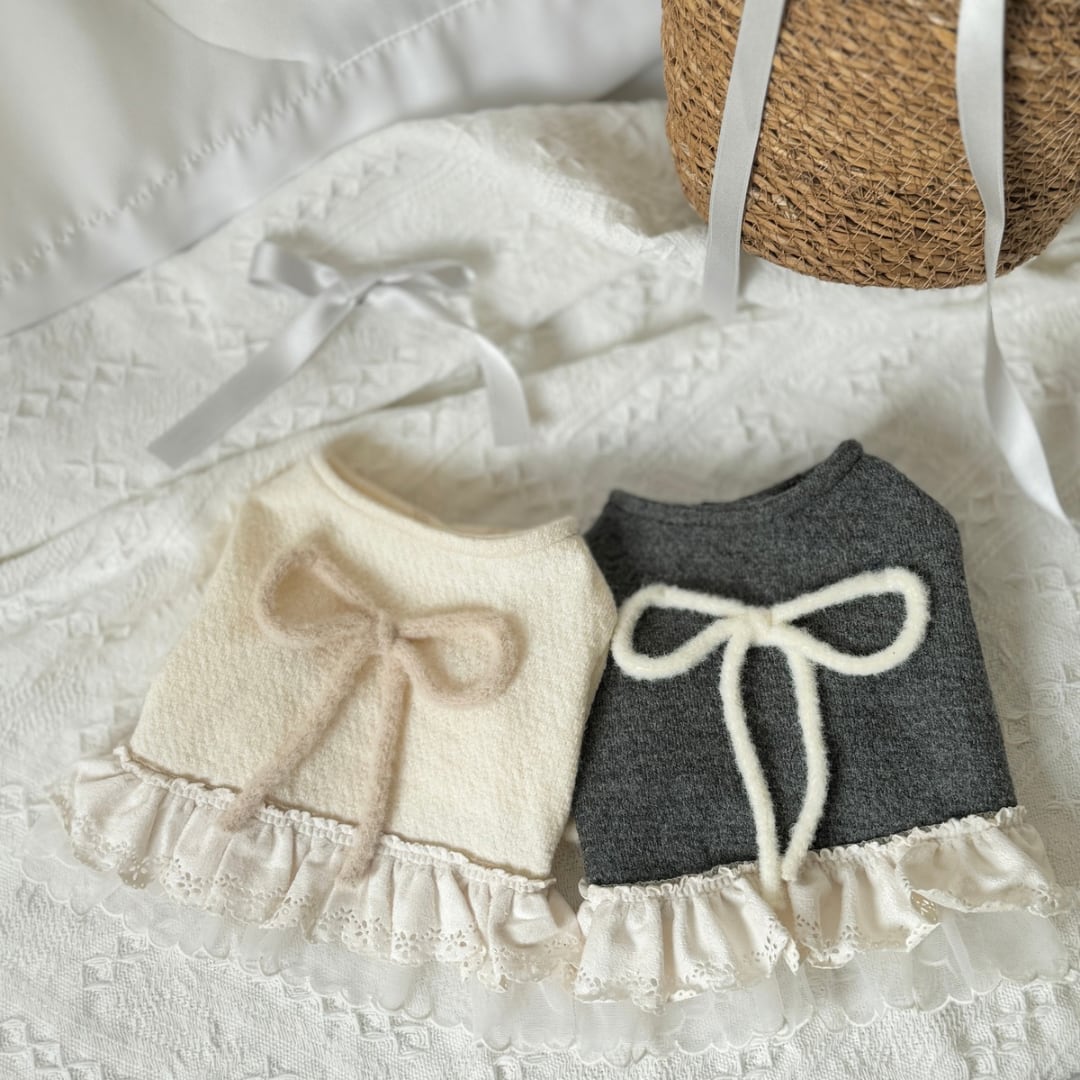 裾にはスウェードアイレットレースをあしらい、背中にはアンゴラリボン